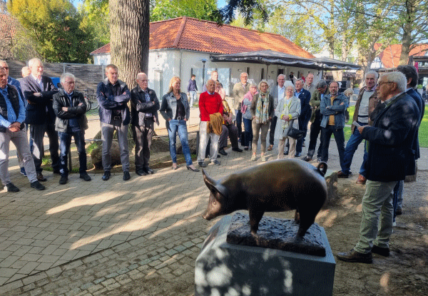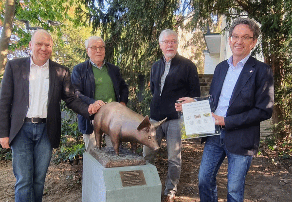 Dies brachte Heinz-Georg Büker (Vors. des Vereins vlf – Verein landwirtschaftlicher Fachschulabsolventen Soest e.V. und bekannter Stadtführer in Soest) und Dr. Gerhard Haumann, (Vors. Bürgerstiftung Hellweg-Region, ehemaliger Leiter der Kreisstelle Soest der Landwirtschaftskammer und von Haus Düsse) auf die Idee den Schweinemarkt zum Anlass zu nehmen eine Skulptur / Erinnerungspunkt zu schaffen und die Bedeutung der Landwirtschaft für Stadt und Land herauszustellen.