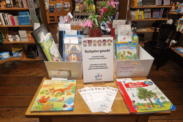 In der Ritterschen Buchhandlung in Soest gibt es einen Büchertisch mit einer Wunschliste an Kinderbüchern der Soester Grundschulen.