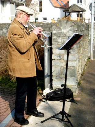 Am 25.03.2021 ging es an der Thomä-Residenz weiter. An verschiedenen Stellen des Hauses spielt Klaus Schmedtmann beim Fensterkonzert Volkslieder, Evergreens sowie einige Jazz-Standards, die allesamt Freude machen. Klaus Schmedtmann trifft auf seinem Kornett genau den Musikgeschmack der Bewohnerinnen und Bewohner.