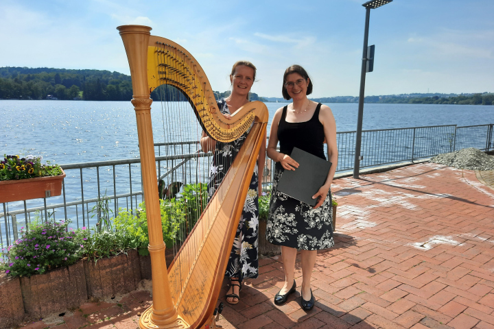 Mit großem Interesse besuchten zahlreiche Bewohnerinnen und Bewohner der Seeufer-Residenz in Möhnesee-Wamel ein weiteres Konzert der von der Bürgerstiftung Hellweg-Region initiierten Reihe „Kultur am offenen Fenster“. Harfenistin Wendy Daelman und Sängerin Nadja Dust verzauberten die Bewohnerinnen und Bewohner mit den sanften Klängen der Harfe und dem emotionalen Gesang. Die beiden Musiker hatten ein buntes Programm mit verschiedenen Stilrichtungen vorbereitet. Neben irischen Volksliedern, klassischer Musik und italienischen Arien hatten sie auch Popmusik in ihrem Repertoire. „Den Bewohnerinnen und Bewohnern sind vor Rührung die Tränen gelaufen und mir ging es ähnlich. Die Musik hat das Herz berührt“, erzählt Frau Rug, soziale Betreuerin der Seeufer-Residenz. „Das Wetter war fantastisch, sodass wir viele Bewohner nach draußen holen konnten. Einige von Demenz betroffene Bewohner erzählten auch am nächsten Tag von dem Erlebnis.“ Nadja Dust und Wendy Daelman verabschiedeten sich zum Schluss mit dem Lied „Ein schöner Tag ward uns beschert.“