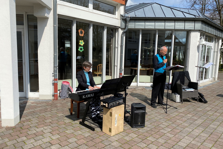 Den Auftakt machten Bettina Casdorff (Klavier) und Peter Griffith (Bariton), die im Garten des Seniorenhauses Saline für die Bewohnerinnen und Bewohner spielen.