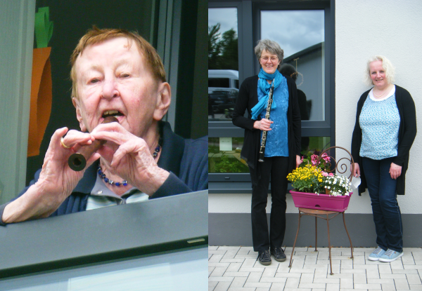 Eine Oboe und ein E-Piano erklingen beim 10. Fensterkonzert für Seniorenhäuser, das diesmal von Henriette Bölz-Vogel und Annette Arnsmeier gestaltet wird. Klassik haben sich die Bewohner des Hauses gewünscht und so kamen sie mit Sonaten von Händel und Mozart auf ihre Kosten. Kaum erklang die Musik, kamen die Vögel näher und stimmten ins Konzert ein. Die musikalische Reise durch viele Jahrhunderte reichte bis zu einem Double Reed Rag, schließlich forderten die Senioren eine Zugabe.