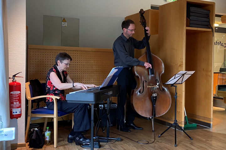 Lippetal, 22.05.2021 I Die sympathischen Musiker Louisa Kimmel (E-Piano) und Ivo Kassel (Kontrabass), beide Musikleher der Musikschule Soest, erreichten die Bewohner des St. Ida-Stifts in Lippetal-Hovestadt mitten ins Herz. Viele bekannte Melodien und Jazz-Standards aus den 50-er Jahren wie z.B. “What a wonderful world” oder “Dream a little dream of me” weckten bei den Bewohnern lebhafte Erinnerungen. Besonderen Applaus gab es für die Volkslieder “Komm lieber Mai und mache” oder “Der Mai ist gekommen”, diese wurden von den ca. 30 Zuhörern sofort erkannt.